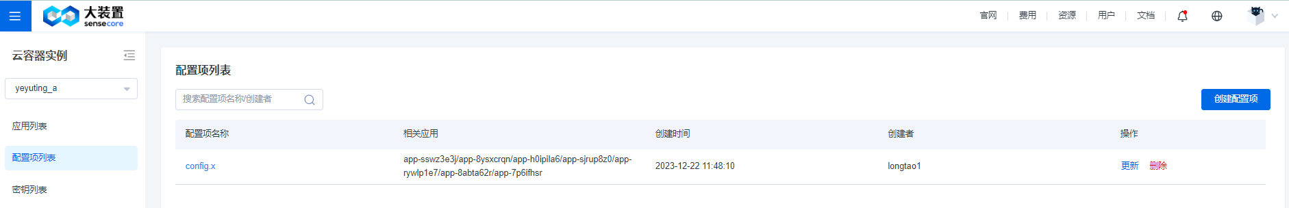 首先通过控制台进入到云容器实例产品,进入到的是一个列表页面,左侧的筛选框可以选择不同的工作空间,点击右上角【创建应用】按钮,即可开启创建的流程。