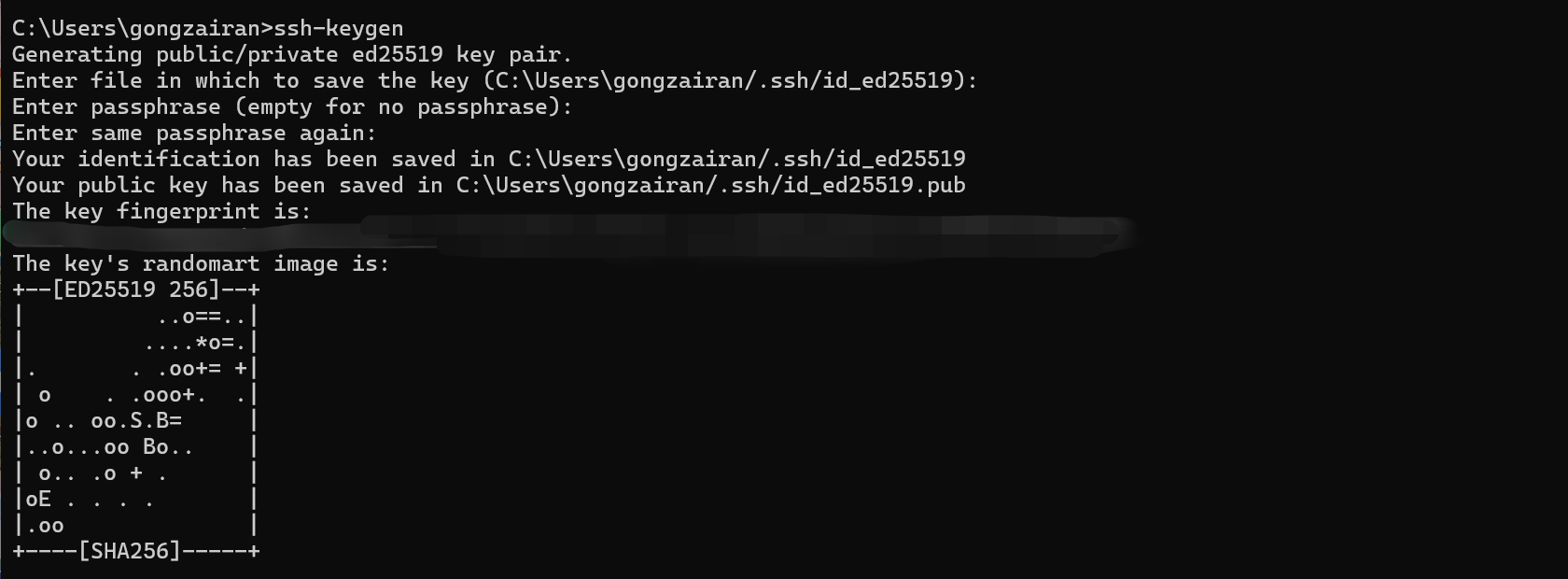 - 输⼊密码和确认密码。如果不想设置密码,直接按两次 enter 键。⽣成后可在公钥生成的地址对应的 id_***.pub 文件下获取到您的公钥信息。