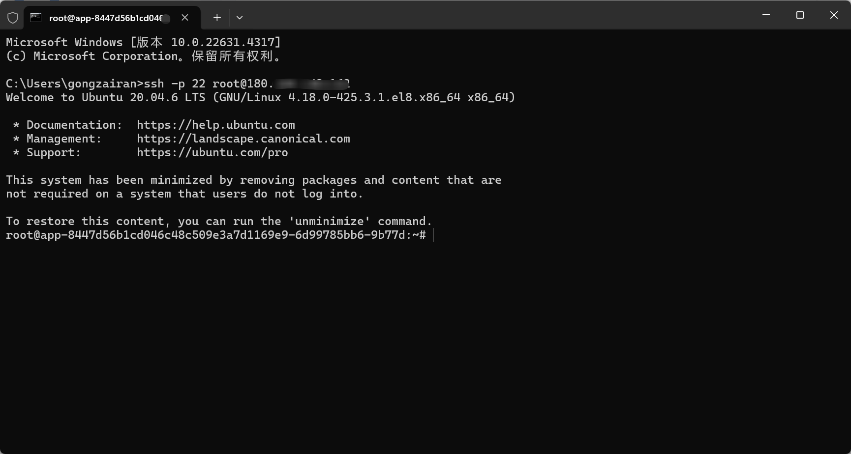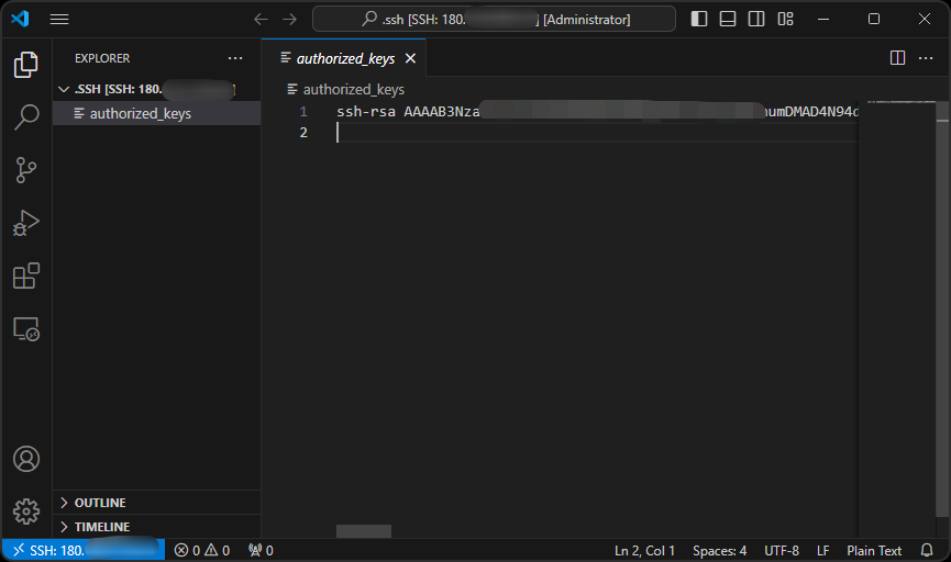 - 在启动容器实例后,将公钥埋⼊ /root/.ssh 中名为 authorized_keys 的⽂件中,执行下述命令后即可进行SSH远程连接。