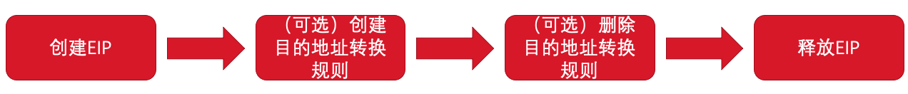 弹性公网IP(EIP)用户可按需创建,并指定带宽等,EIP创建完成后,即下图第1步完成后,VPC内的资源就可以使用分配给EIP的固定公网IP地址和用户指定的带宽访问Internet。