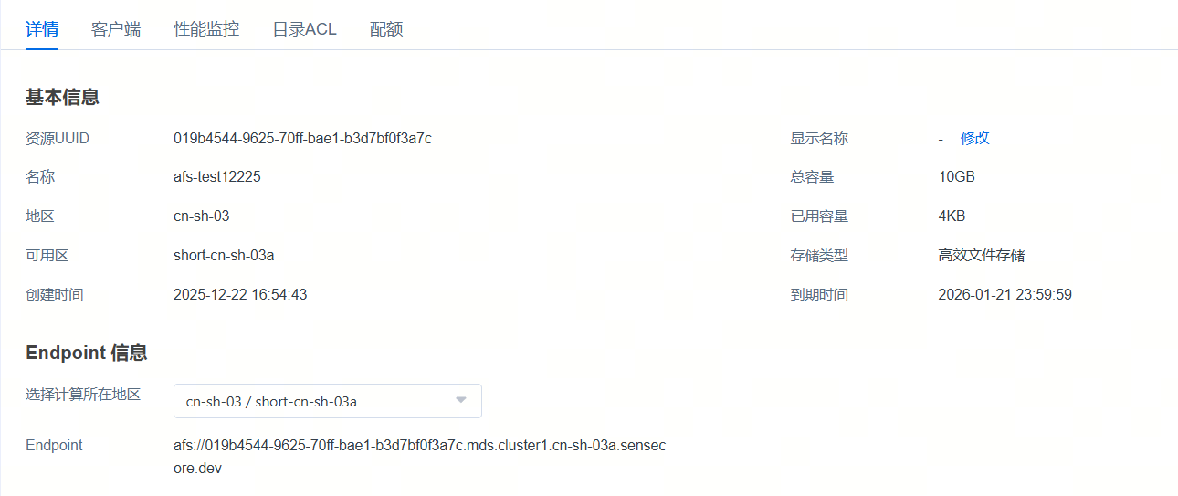 注:同可用区计算挂载文件存储,不需要endpoint信息,endpoint信息不会展示。